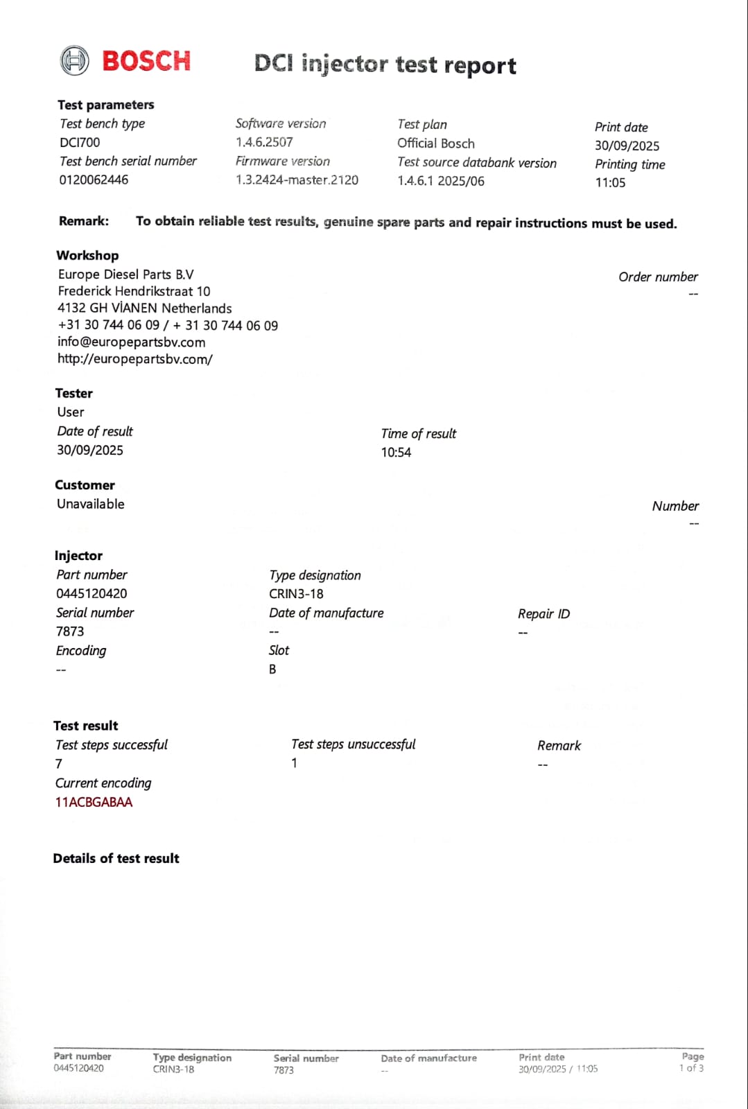 Reman Bosch Injector 0445120420 51101006191 MAN TGS TGX 12.4L